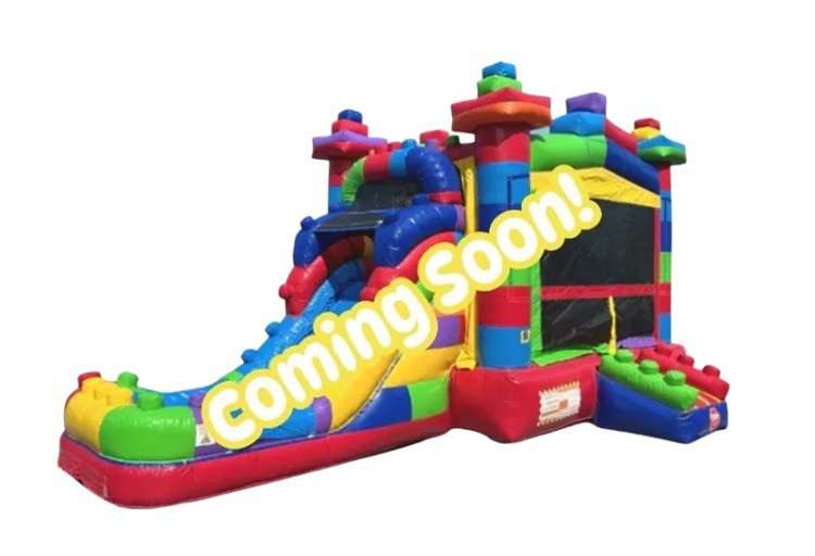 Bring the party to life with the Block Party (Wet/Dry), a colorful combo unit that combines a spacious bouncing area with an exciting slide and splash landing. Built with bright, oversized brick-like accents, this rental works great for backyard birthdays, community events, and family gatherings. Use it dry for jumping and sliding nonstop, or add water for a cooling, splashy finish that kids will race to. The roomy bounce area is surrounded by safety netting for visibility and airflow, and the inflatable slide has soft sidewalls and an arresting splash/landing pad to cushion the descent. Durable vinyl construction and easy setup make this an entertainer that keeps the fun safe, contained, and picture-perfect.